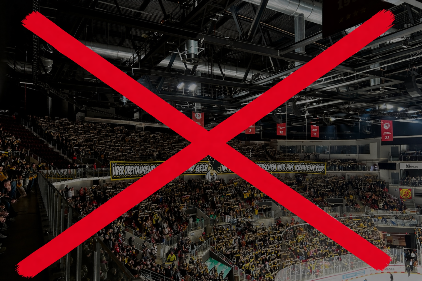 Jetzt muss ein runder Abschluss her. Ein Entgegenkommen. Wir erlauben 100 Fahnen. Natürlich nur, wenn die Krefelder innerhalb von 48 Stunden für jede einzelne ein B1-Zertifikat (schwer entflammbar) vorlegen. Und diese Zertifikate müssen selbstverständlich am Spieltag mitgeführt werden. Das die Fahnen nach unseren eigenen Regularien uneingeschränkt zulässig sind, lassen wir mal außen vor. Es ist immerhin ganz klar eine Choreo-Alternative! Außerdem bestimmen wir penibel, wie die Fahnen verpackt werden müssen. Notwendig, versteht sich. Denn Schals, Fahnen und ähnliches kennt man bei uns ja nur aus dem Internet. Potentielle Risiken. Die Jacken der 13.000 Zuschauer, die irgendwo in der Halle verstreut liegen, sind schließlich auch alle schwer entflammbar. Die sind ja harmlos.